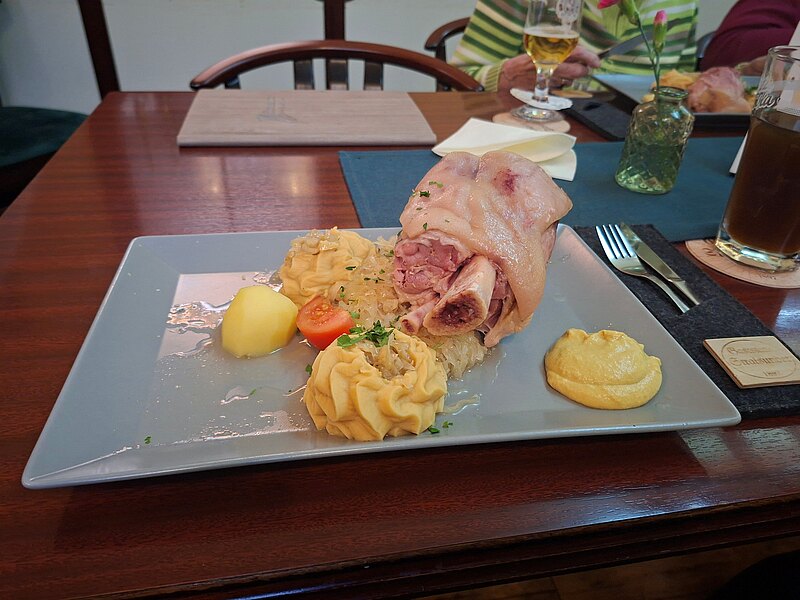Die meisten unserer Gäste ließen sich das Eisbein mit großem Genuss schmecken. Für diejenigen, die lieber etwas anderes essen wollten, bot die Speisekarte selbstverständlich passende Alternativen – so fand jeder etwas Leckeres für sich. Niemand sollte hungrig vom Tisch aufstehen, und genau so kam es auch.