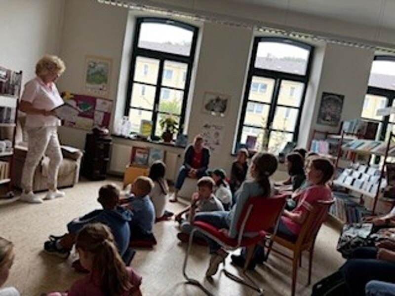 Am DONNERSTAG waren wir in der Bibliothek, dort hat uns die Bibliothekarin verrückte Geschichten von Tieren vorgelesen und das Spiel „1,2 oder 3“ mit uns gespielt. Zum Schluss hat sich jeder noch ein oder auch mehrere Bücher nach seinen Interessen ausgeliehen. Und unsere zukünftigen 2. Klassen sind jetzt neue Mitglieder in der Bibliothek geworden.